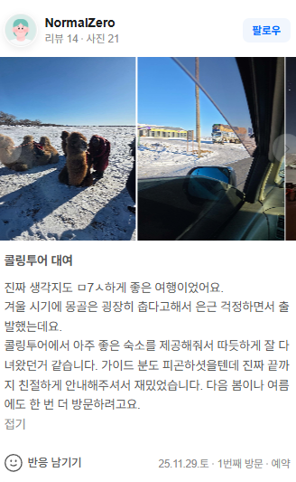 몽골 중부투어 (2025.11.29~)