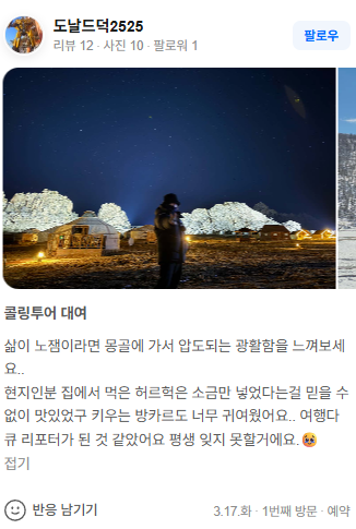 삶이 노잼이라면 몽골에 가서 압도되는 광활함을 느껴보세요..