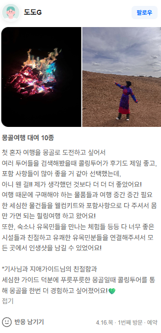 첫 혼자 여행을 몽골로 도전하고 싶어서