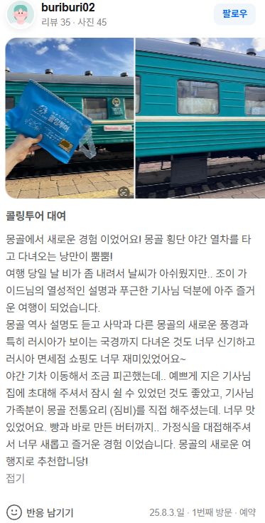 몽골에서 새로운 경험 이었어요! 몽골 횡단 야간 열차를 타고 다녀오는 낭만이 뿜뿜!