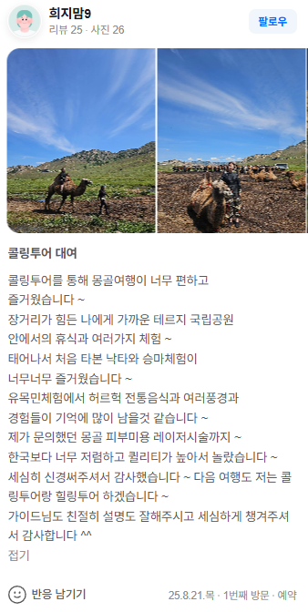 세심히 신경써주셔서 감사했습니다 ~ 다음 여행도 저는 콜링투어랑 힐링투어 하겠습니다 ~
