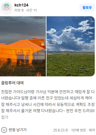 몽골 중부투어 (2025.08.23~)