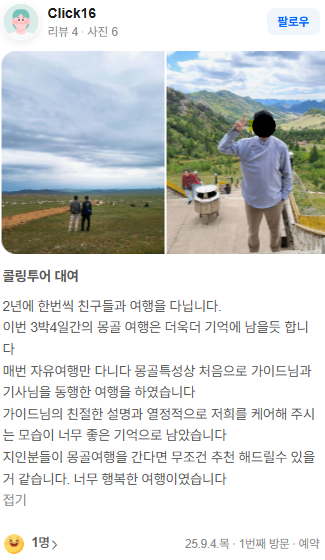 지인분들이 몽골여행을 간다면 무조건 추천 해드릴수 있을거 같습니다. 너무 행복한 여행이였습니다