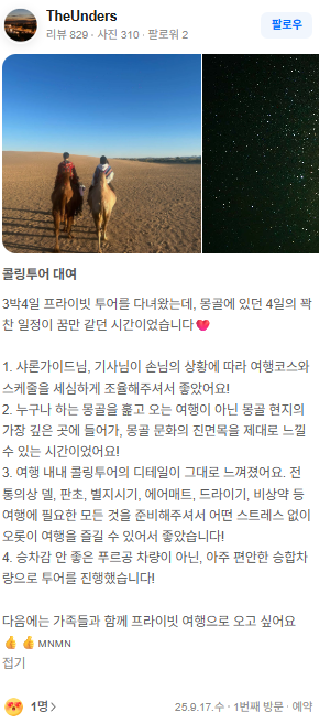 3박4일 프라이빗 투어를 다녀왔는데, 몽골에 있던 4일의 꽉찬 일정이 꿈만 같던 시간이었습니다❤️